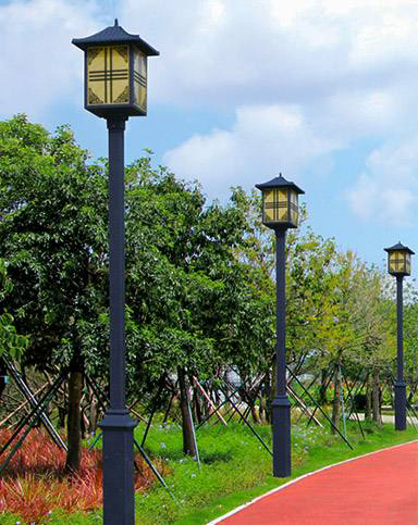 太阳能新城镇庭院灯以太阳辐射能为能源,白天利用太阳能电池板给蓄电池充电,晚上蓄电池给庭院灯光源供电使用,无需复杂昂贵的管线铺设,可任意调整灯具的布局,安全节能无污染,充电及开/关过程采用智能控制,光控自动开关,无需人工操作,工作稳定可靠,节省电费,免维护。